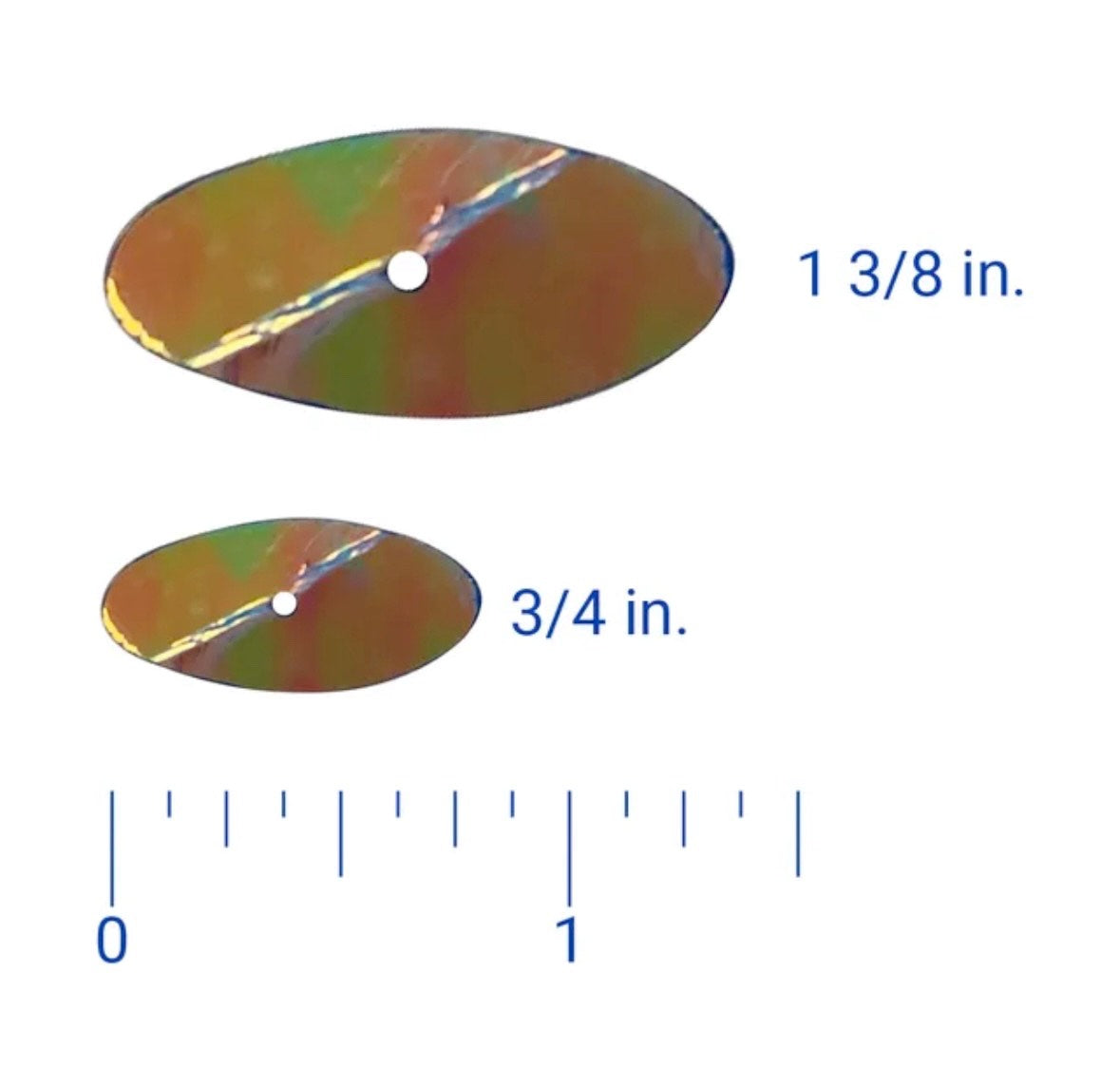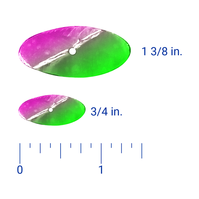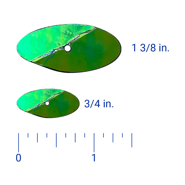 Our popular PK Reeff blades and made out of a lightweight flexible plastic in two sizes. The smaller blade measures 3/4 inch in length and the larger blade is 1 3/8 inch in length.